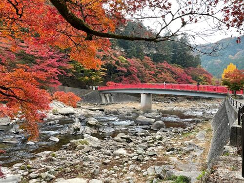 子どもと一緒に紅葉の名所・香嵐渓へおでかけしてきました。早朝の香嵐渓は人も少ないし、2歳児でも自由に動き回れて楽しそうでした。11月中旬で見ごろとのことでしたがまだ少し早かったけれど、のんびり秋を感じられる散策になりました。